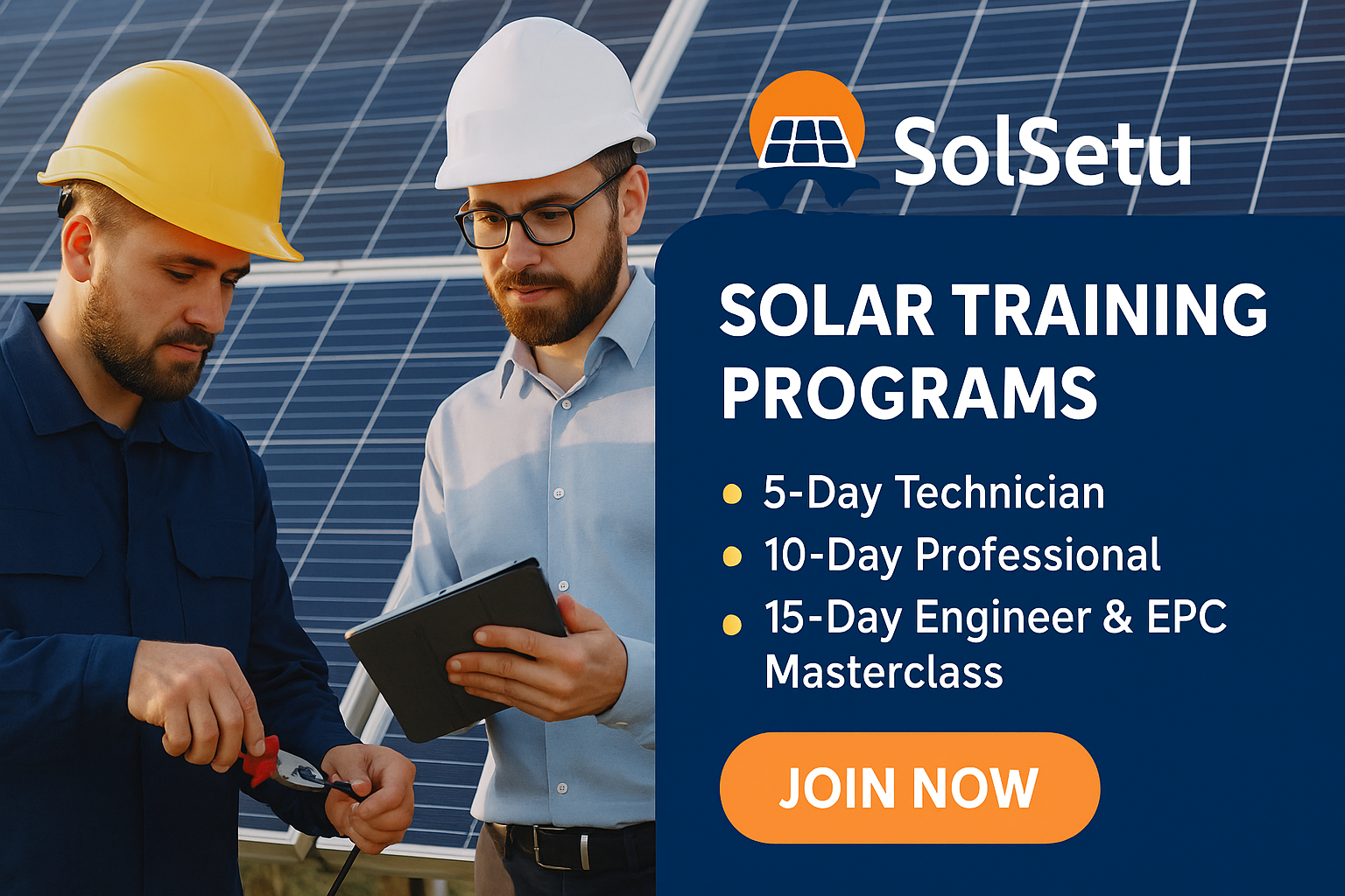 Hands-on solar training for technicians, designers & EPC engineers. Limited seats per batch with real rooftop and lab practice.