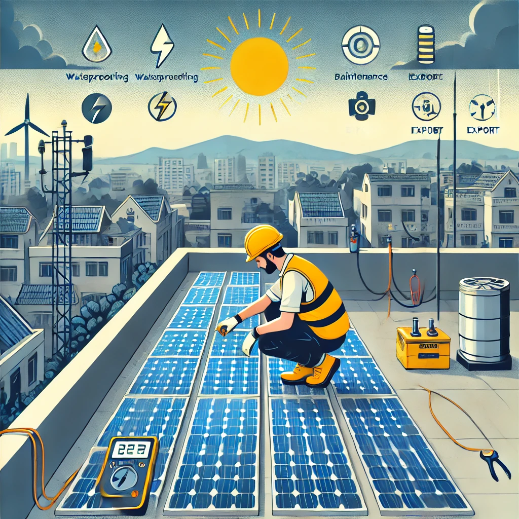 Seal & tighten: Inspect junction boxes, MC4 connectors, and cable glands; replace brittle seals.